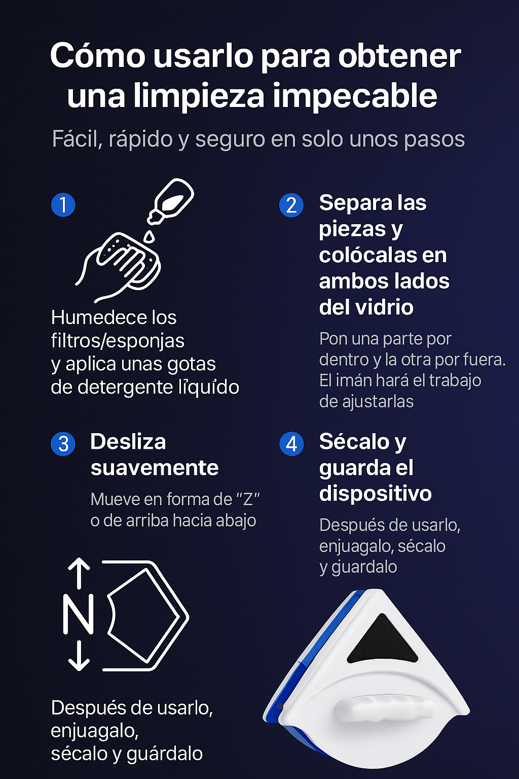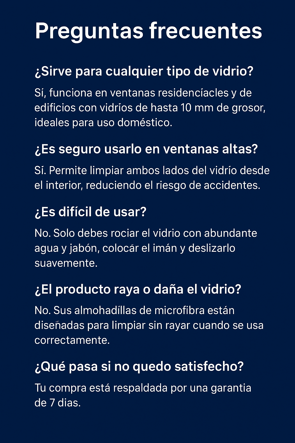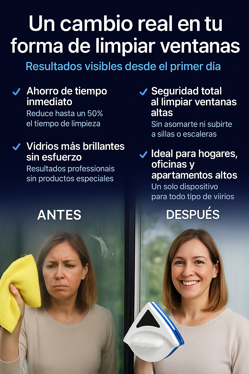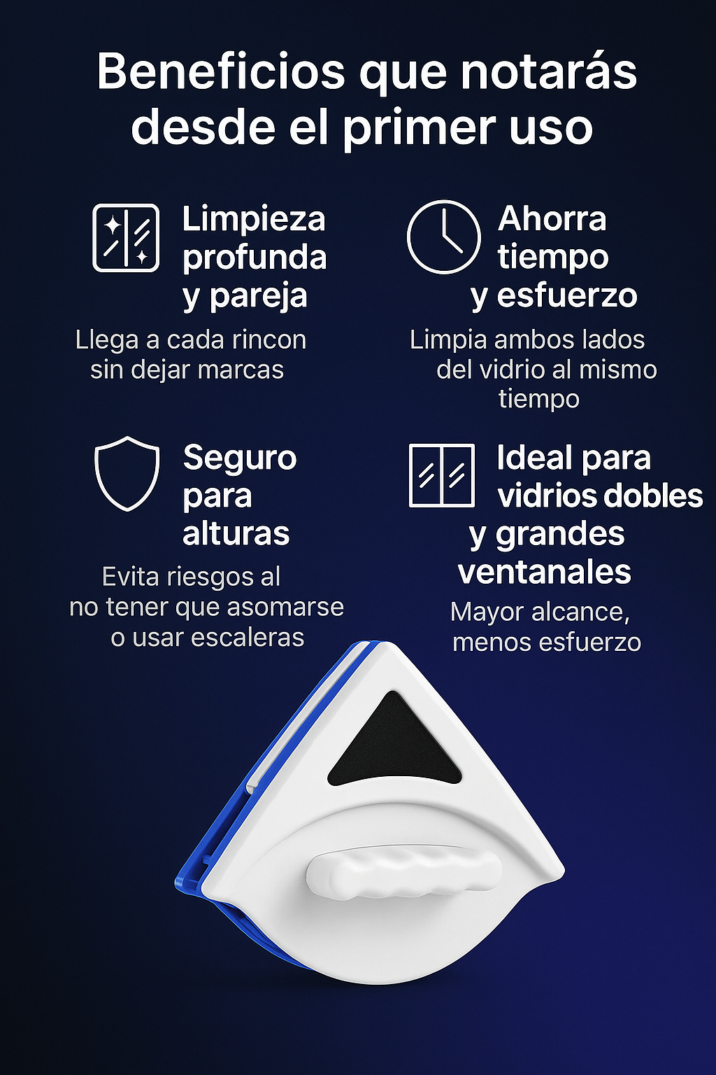 Vivo en departamento y siempre me daba miedo limpiar las ventanas. Con este limpiador lo hago fácil y seguro.